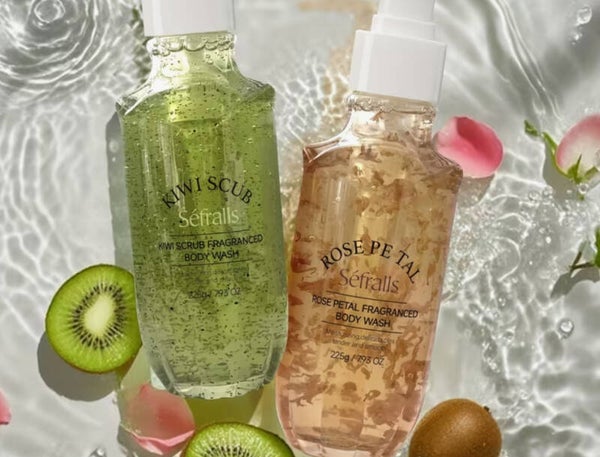 Gel douche bio avec de l'huile et pétalas de rose vous donnant une exfoliant et gommage afin de regenerer votre peau .